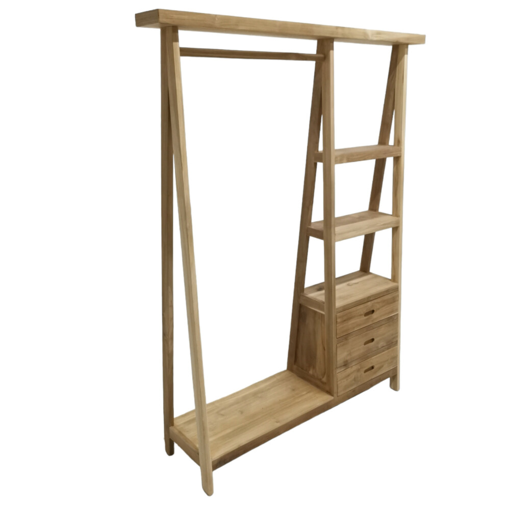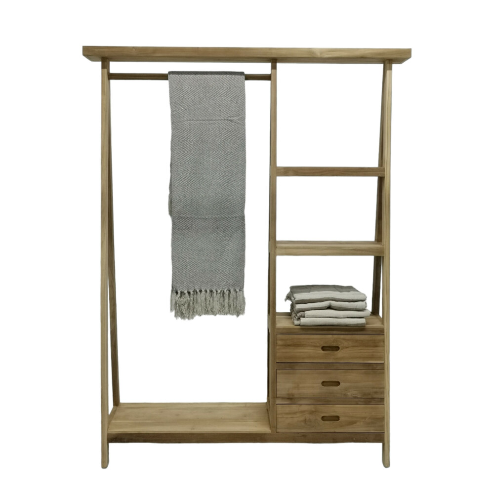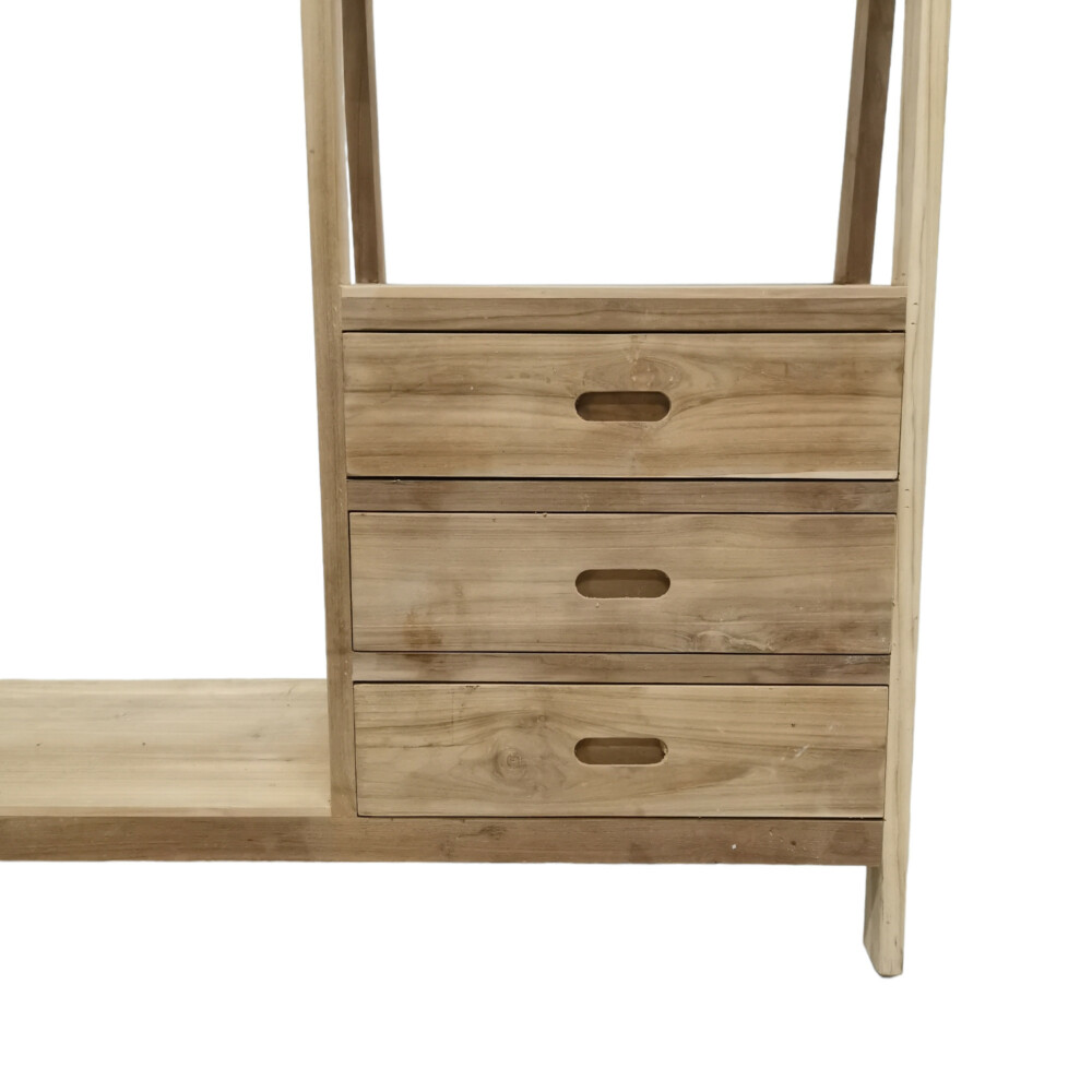 Introducing our Wooden Teak Clothes Rail with Drawers – the perfect blend of functionality and timeless elegance for your bedroom or dressing area