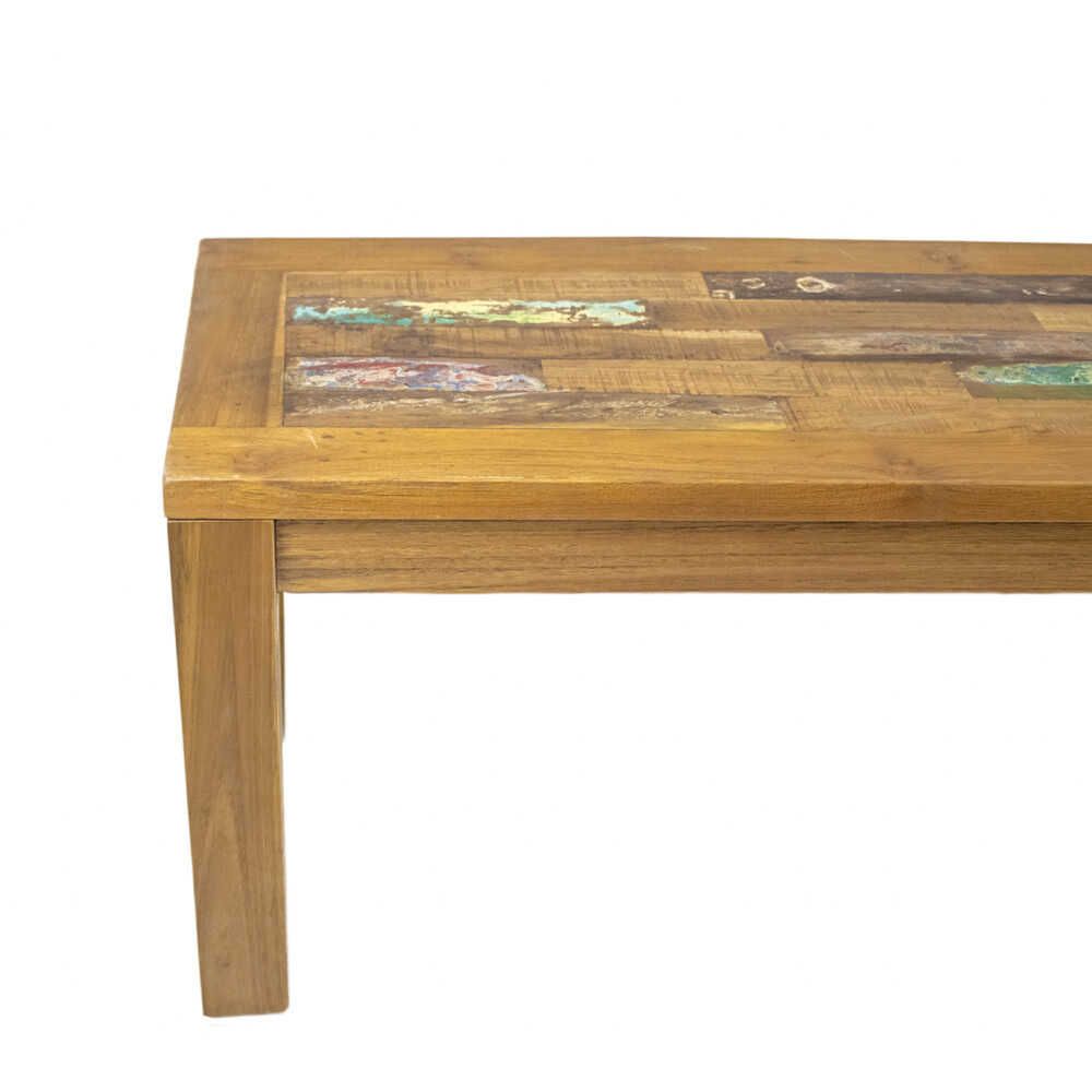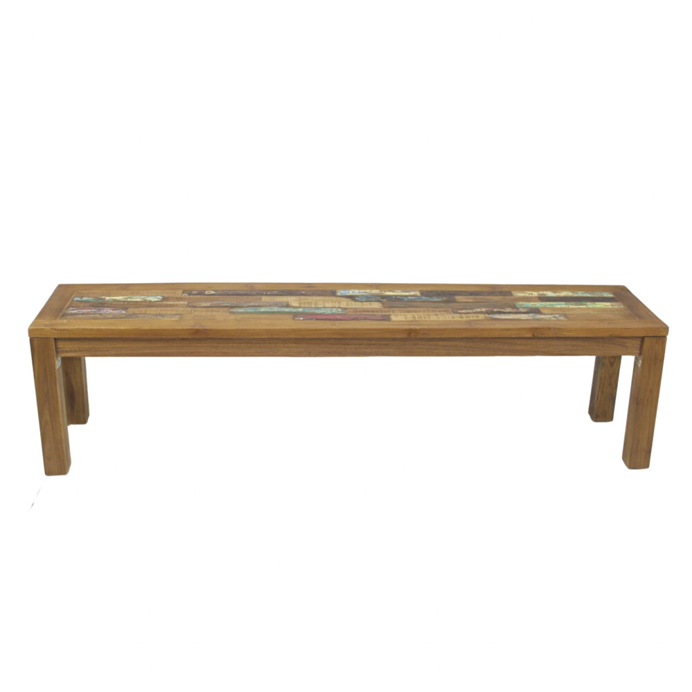 The bench is crafted from 100% natural teak wood, known for its durability and resistance to decay