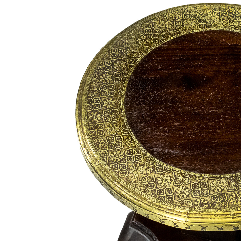 Versatile Design: With its natural wood grain and rich brass accents, this side table seamlessly fits into various decor styles, from modern to rustic