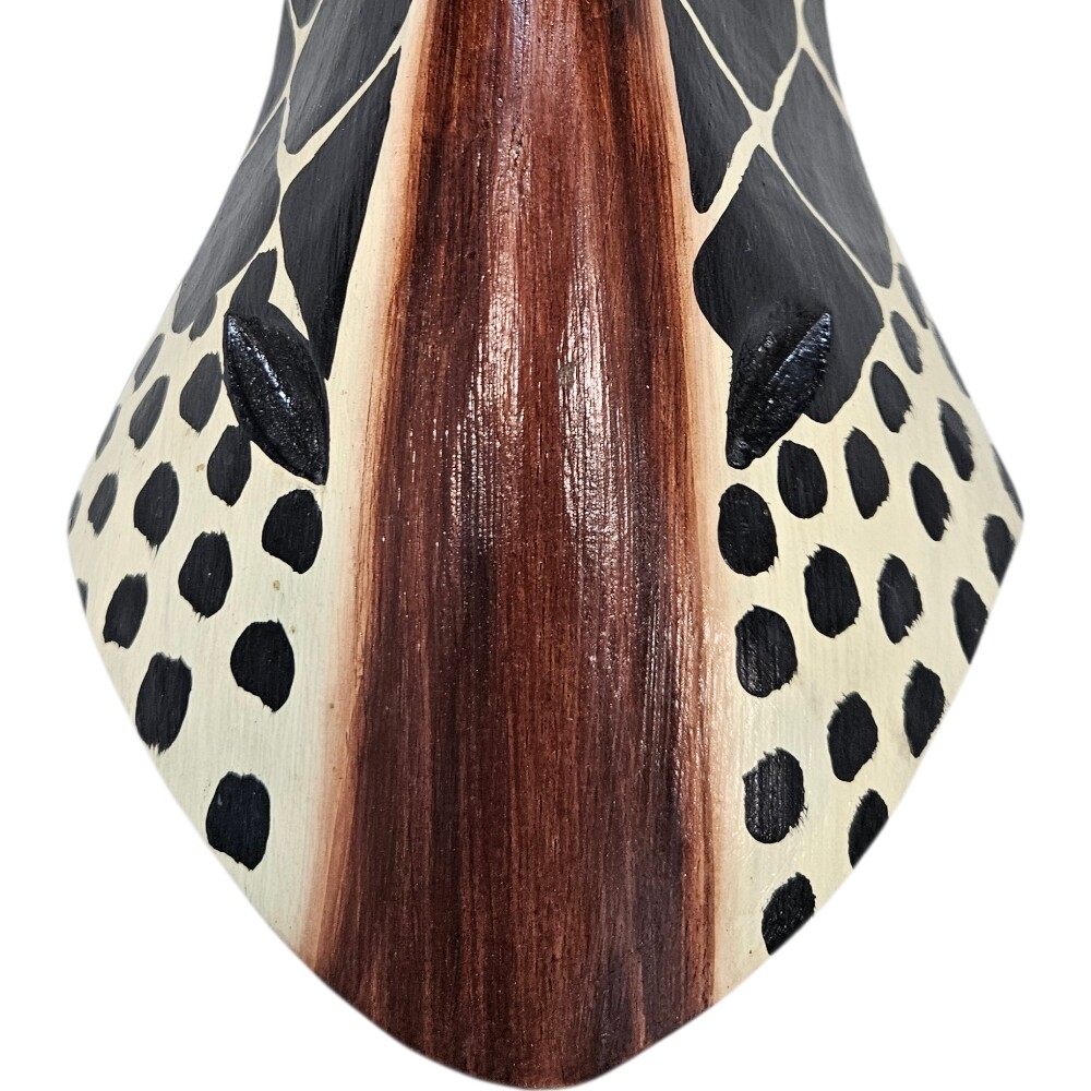 This striking 18cm (Length) x 50cm (Height) Wooden Giraffe Pattern Wall Mask is a masterpiece of artisanal expression, designed to bring the vibrant spirit of the African savannah into your home