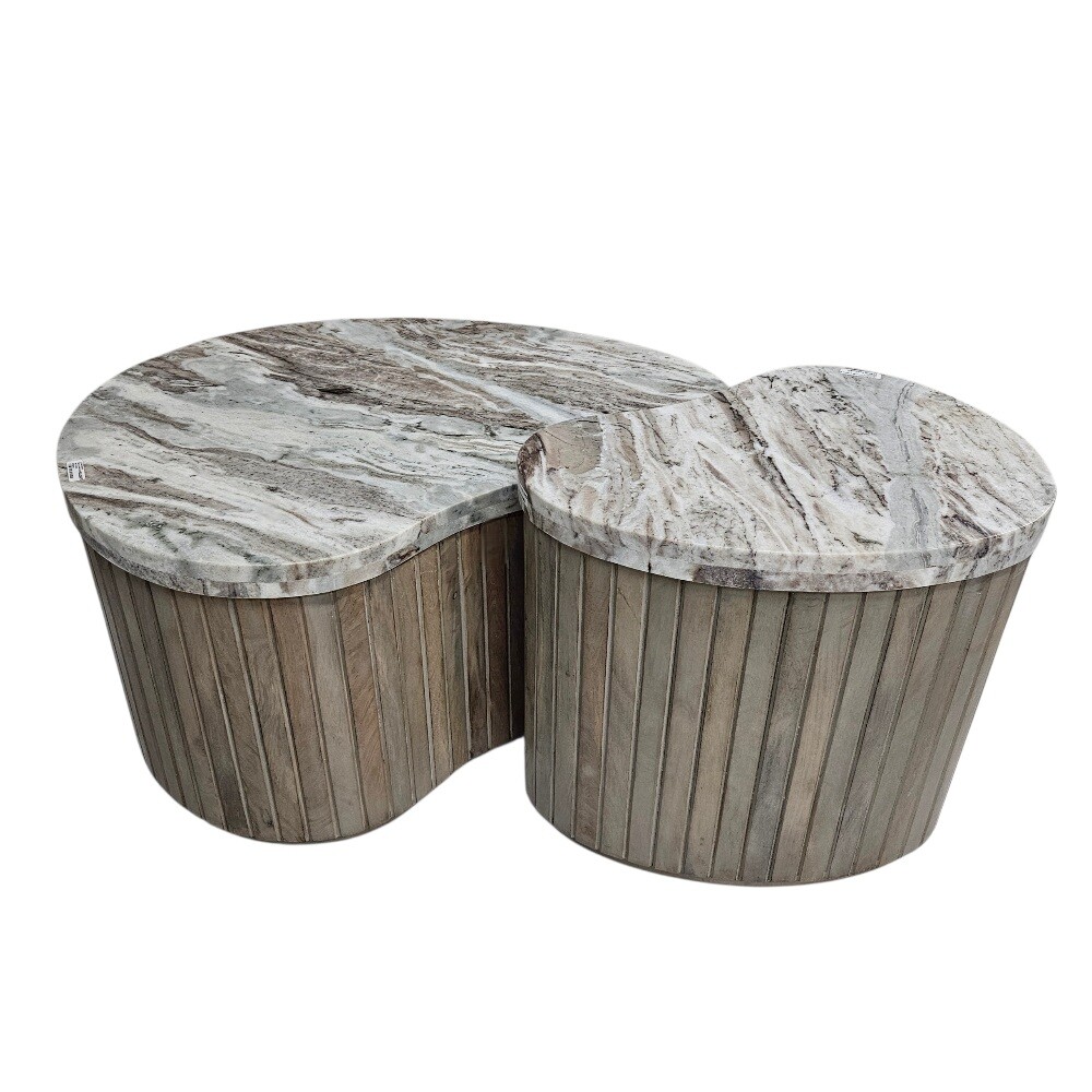 This sophisticated 96cm (Length) x 77cm (Depth) x 45cm (Height) Zenith Marble and Mango Wood Coffee Table Set is a masterful expression of contemporary luxury and organic textures, designed to bring a refined, nesting rhythm to your living space
