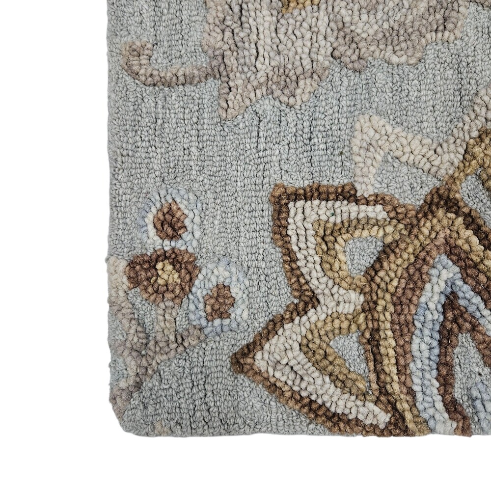 - Textured High-Low Pile: The hand-tufted wool construction uses different loop and cut pile heights to define the edges of the flowers and leaves, giving the pattern a distinct, dimensional, and tactile quality